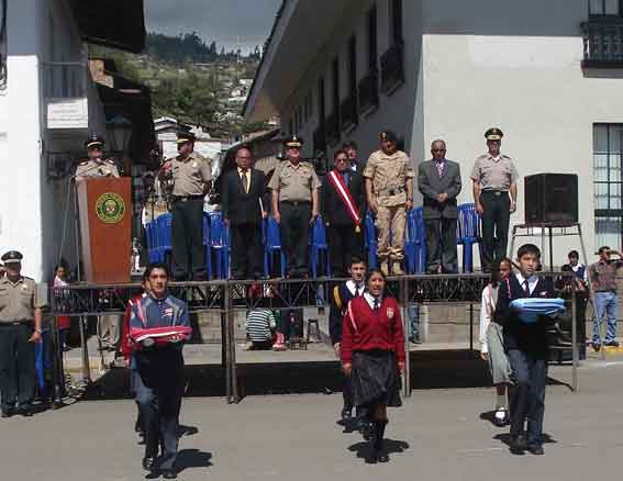 Ayer por la mañana, la Plaza de Armas de la ciudad de Cajamarca, Perú, fue escenario de una actuación cívico-patriótica, de hondo significado para el estudiantado cajamarquino al llevarse a cabo la IMPOSICIÓN DE INSIGNIAS DE MANDO A LA POLICÍA ESCOLAR DE DIVERSAS INSTITUCIONES EDUCATIVAS DE CAJAMARCA. Ver fotos.