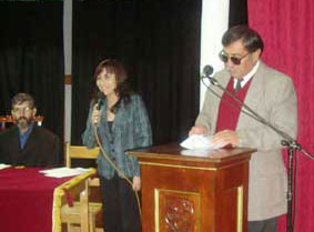En este suceso muy trascendental estuvieron como maestros de ceremonias el dramaturgo Mauro Rojas y la poetiza Kelly Huamán quienes, alternadamente, con frases muy emotivas, elocuentes y adecuadas para esta ocasión, desarrollaron muy amenamente la velada poética programada. A ambos artistas, les expresamos nuestra sincera felicitación por esta labor tan destacada. |