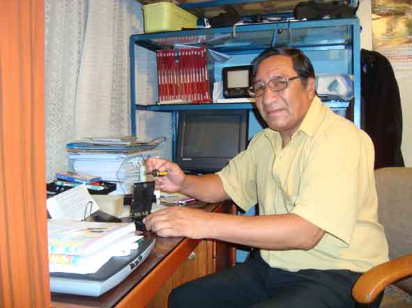 Lo visitamos a su domicilio al Mg. Paulino Vásquez Cueva, para expresarle nuestra felicitación placentera, sincera y sentida; lo encontramos en su mesa de trabajo verificando el funcionamiento de un “Cargador de pilas con energía solar”, la energía del futuro. El Mg. Paulio Vásquez tuvo la gentileza y la paciencia de explicarnos los fundamentos de sus métodos que aplica en la enseñanza de la Física con vídeos y presentaciones en PowerPoint, que les proporcionaremos posteriormente en nuestra sección “Pagina Educativa”, también daremos a conocer la relación de Docentes universitarios que fueron galardonados, en las otras Facultades, en esta ceremonia especial de inicio del Año Lectivo 2010 en la UAP. |