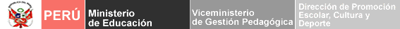 Lic. Lorena Gaona Durand Especialista de Cultura Ministerio de Educacion del Perú Direccion Nacional de Promoción Escolar, Cultura y Deporte Calle Van de Velde 160 - San Borja Telf. 615-5830 anexo: 1157 |