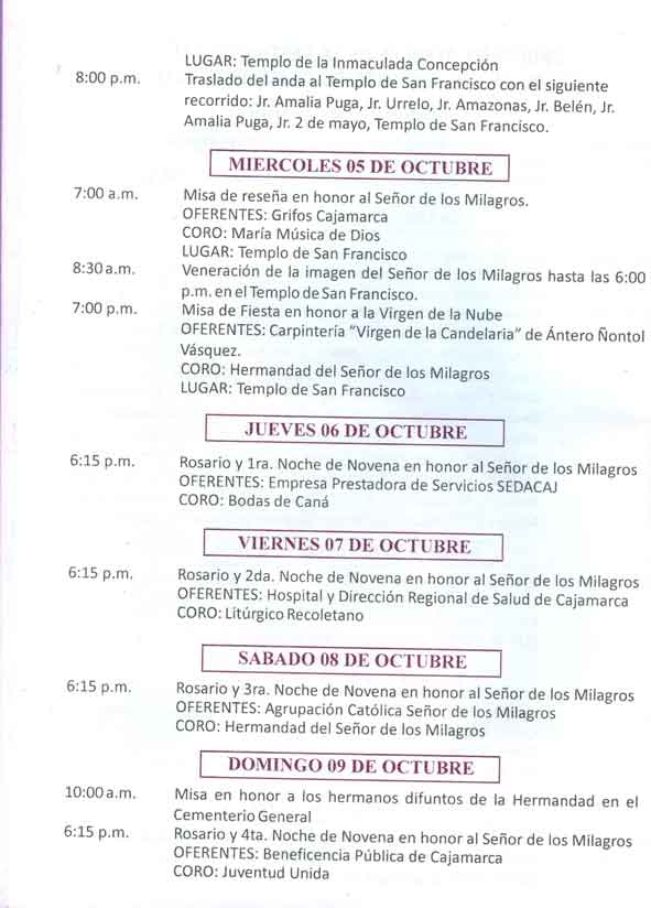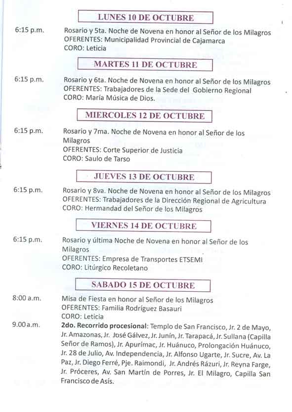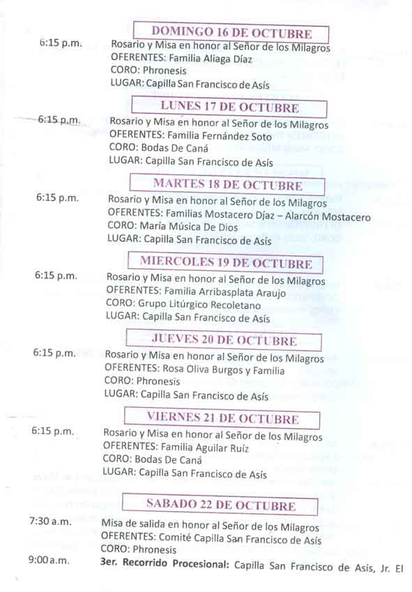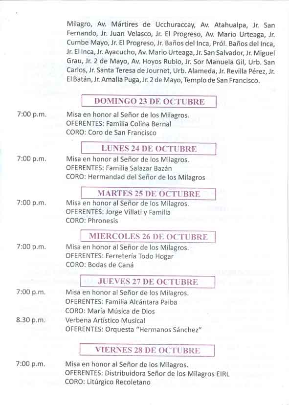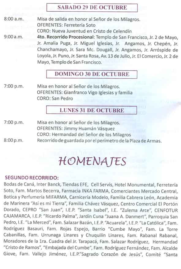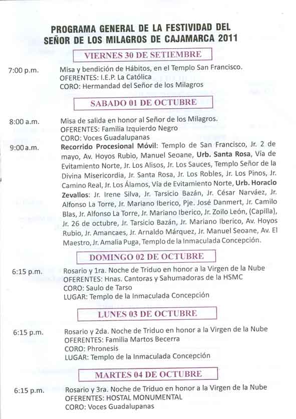 Ir a Presentación Señor de los Milagros Ir a Señor de los Milagros 2011