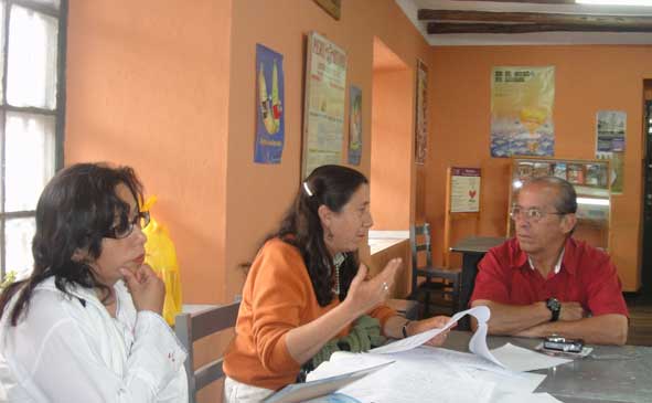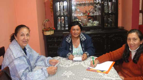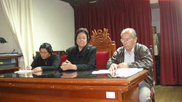 De izquierda a derecha: Las poetas cajamarquinas Sara Gutiérrez Sisniegas, Elizabeth Oliveros Cueva y Socorro Barrantes Surita, procesando la información cultural de Chota y Contumazá