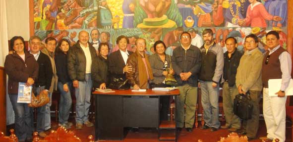 De Izquierda a derecha: Ing. William Guillen Padilla, Profesor Jacinto Cerna Cabrera, Prof. Guillermo Torres Ruiz, Enf. Consuelo Lezcano Ruiz, Prof. Gregorio Santos Guerrero, Presidente del Gobierno Regional, Abogado César Aliaga Díaz, Vicepresidente del Gobierno Regional y Prof. Antonio Goicochea Cruzado.