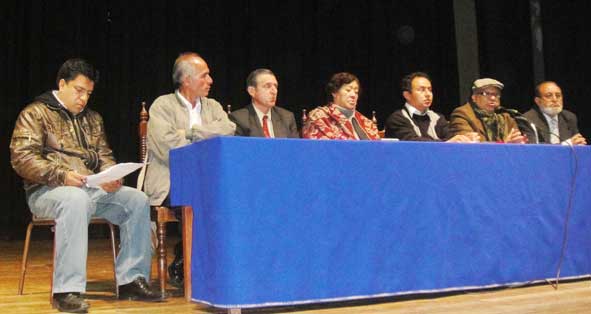 Mesa de Honor que preside la ceremonia inaugural del "Ciclo de Conferencias y Testimonios" conmemorativos al Centenario del Nacimiento de José María Arguedas.