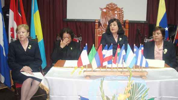 De izquierda a derecha: Sra. Anabel Mori de Sáenz, Srta. Nora Sánchez Zevallos, Srta. Milagros Barrantes Canto(Presidenta) y Srta. Teresa Bazán de Miyazato