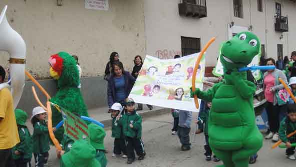 Nuevamente la prestigiosa I.E.P. “Personitas” de Cajamarca presentó, el día de ayer, una actividad educativa trascendente: el desarrollo del “Pregón de Aniversario”, debidamente ordenados con banderolas, pancartas y vivas, al compás de marchas que interpretaba una banda de músicos, se desplazaron alumnos, profesoras y demás personal de esta I. E. acompañados de algunos padres de familia y público curioso por las arterias aledañas al local institucional, dando a conocer la celebración de su “II Aniversario de Creación”