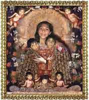 De acuerdo a la típica estrategia de dominación, los conquistadores españoles de las Américas utilizaron el arte como propaganda para su causa. Pinturas religiosas representando imágenes con rasgos caucásicos fueron usados rutinariamente por los colonizadores alrededor del mundo imponiendo las ideas, religión y estereotipos occidentales. Los maestros pintores europeos enseñaron a los pintores locales de las colonias a reproducir su estilo pictórico y a mantener el uso de símbolos y rasgos occidentales en las obras de arte religiosas. En las Américas, muchas de las pinturas giraron alrededor de una figura central femenina, la imagen de la Virgen, la cual representaba el ideal al que las mujeres nativas estaban supuestas a alcanzar: pureza, benevolencia y sumisión.