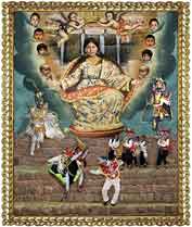 Las “Vírgenes Urbanas” son fotografías basadas en pinturas coloniales, revisadas y reinventadas para reflejar realidades e ideales contemporáneos. Para éste proyecto, fueron utilizadas imágenes históricas de pinturas religiosas de la Escuela de Cusco. Fueron sustituidos personajes, fondos y símbolos por elementos que celebran más al Perú de hoy, en vez de los ideales del conquistador.
