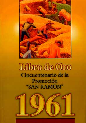 La singularidad de los pasajes narrados tratan de revivir, describiendo aquellas lejanas percepciones con sus propias palabras, los momentos de fugaz y transparente ingenuidad adolescente en la que los autores, aún inexpertos en los avatares de la vida, se endilgaban montones de experiencias como si nada, al desarrollar su propia formación física y social, como integrantes de un apasionado conglomerado humano, pleno de avidez intelectual y de travesura, que trataba sin saber cómo a ciencia cierta, pero sí con todas las fuerzas de su ser y con pura intuición, romper para siempre el premonitorio adagio del libertador Simón Bolívar cuando dijera que “La ignorancia en un pueblo es el instrumento de su destrucción”. La compilación que ahora se presenta, constituye una cromática diapositiva de las bregas que tuvimos que batallar durante nuestra época de colegiales, tratando de ligarlas con lo que hemos logrado en la vida, hasta la fecha; lapso en el que nos coligamos a partir de nuestras más caras nostalgias y esperanzas, todas ellas, ávidas de horizontes llenos de expectativas y plagadas de un inenarrable asombro frente a la realidad. Creemos sin embargo que las metas logradas, patentizan nuestras vocaciones, y es que, con ellas mismas, agotamos sendos esfuerzos en busca de amor, ternura, consideración y éxito; ahora este gratificante trajinar nos encuentra empeñados en fortalecer la fraternidad que una vez aprendimos en los viejos claustros junto con la necesidad de hacer de nuestras existencias, una vida fecunda. En los reencuentros preparatorios de esta magna celebración, se despertaron peculiares emociones, de las cuales, se ha memorizado el sentir latente de ideas personales; para luego, ilustrarlas con la voz y el texto, en una ágil visión esquemática que no nos permita dudar jamás de la comunicación espiritual, cultivada a partir de nuestra inicial amistad juvenil, la misma que ha de representar, para la posteridad, una de las riquezas más notables y caras de las que el hombre pueda gozar. Oscar Manuel del Águila Mendoza Presidente de la Promoción. PRESENTACIÓN Verdaderamente es un libro de oro, debidamente ilustrado con imágenes pictóricas y fotográficas, con sugerentes y emotivas páginas escritas que configuran una atmósfera existencialista porque recogen aquellas intensas vivencias de fraterna interrelación humana durante la juventud de los integrantes de la Promoción San Ramón, 1961. Son experiencias evocadas a veces con cierta nostalgia, pero ennoblecidas con un gran sentimiento, la gratitud al alma mater, porque sin duda la gratitud es la memoria del corazón. Permítanme referirme de manera general y sucinta a las páginas escritas del libro, procurando mantener la secuencia de las mismas. Oscar del Águila Mendoza ha dejado correr su pluma en varias páginas de la obra: 1. Aparece en primer lugar la semblanza etopéyica del Dr. Zoilo León Ordóñez. El estilo connotativo de Oscar del Águila permite una precisa evocación de la riqueza espiritual y académica del maestro. 2. El proemio del Libro de oro nos ilumina literariamente sobre el contenido de la obra. 3. Bajo el título de “Los arpegios de un himno marcial-, con el seudónimo RACSO (como se presentaba el connotado intelectual peruano Oscar Miró Quesada Rada), esta vez Oscar del Águila, luego de remontarse a los orígenes de las melodías marciales, nos informa sobre los célebres autores del himno de nuestro Colegio San Ramón: Carlos Zumarán Tarazona y Jorge Polanco Urcia, conocido como Cohén; letra y música encamadas en nuestros corazones que nos estremecen y nos hacen vibrar de emoción. 4. “Nuestros maestros”. Bajo este título, en prosa clara y elegante, Oscar nos expone los propósitos que han animado las páginas del Libro. 5. “El saber que entusiastas nos brindan” es el título de la página en la cual aflora la intensa añoranza del clima académico, humano y fraterno que reinó hace 50 años en el claustro sanramonino. 6. “El saber con fe y con amor”. En siete páginas de honda añoranza se expone la semblanza magistral de los maestros frente a sus respectivas asignaturas. Allí están los perfiles humanos y académicos de los maestros inolvidables. Es admirable la precisión y capacidad de síntesis de Oscar del Águila para acercamos en breves pinceladas al rasgo característico de cada maestro y su materia. Ellos son: Felipe Benoni Campos, Aníbal Zambrano Tejada, Tarsicio Bazán Zegarra, Zoilo León Ordóñez, Ceferino Velásquez Espinoza, Sixto Díaz Aguilar, Josué Tejada Atalaya, Osías Palomino Bazán, Norberto Barboza Miller, Alejandro Quispe Berríos, Julio Vásquez Carretero, Miguel González Chávez, Armando Barrantes, César García Cabrera, Max Gutiérrez Calle, Rubén Chauca Arriarán, Samuel Silva Marín, Antonio Saravia Castro, Rosas León Quiroz, Agustín Silva Ancagima, Jorge Cueva Arana, Segundo Villanueva Mestanza, Leoncio Rojas Bazán, Andrés Zevallos de la Puente, R.P. Manuel Ugaz, Melchor Dávila e Isaac Fernández; Juan Villanueva Rodríguez “Bagate”, Guillermo González Muñoz, Carlos Pajares y Félix Rodrigo, Alamiro Vidal y Artidoro Rodríguez. Los Auxiliares: Paco Pérez, Jorge Colina, Carlos Vásquez Arnao, Misho Vecorena. Personal de Servicio: Cástulo Hoyos. 7. “Sonora esencia de otrora”. En esta humorística y picara página aparecen algunos maestros con sus respectivos apodos. No podía faltar la mención a los Directores Alfonso La Torre Barrantes y Dr. Blanco. Luego aparecen las interesantes narraciones del escritor Wilson Izquierdo González, tituladas: “El gallo coquero” y “Los de Ciencias y los de Letras”. Seguidamente figuran los poemas de: 1. Hermes Díaz izquierdo: “Himno a la Promoción “San Ramón”, 1961. Es una composición llena de nostalgia, añoranza y promesa. 2. Víctor Izquierdo Bazán se apunta con la recitación de un hermoso poema romántico. 3. Víctor Hugo Díaz Díaz entreg