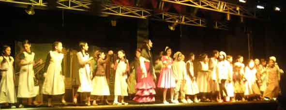 Felicitamos muy sinceramente al Prof. Henry Manosalva, Director Teatral, a los Directivos de esta I.E.P.y a todos los alumnos y profesores participantes por esta gran actuación en este espectáculo musical, pero de manera especial felicito a mi sobrina nieta Jennifer Ann por su gran debut en las 'tablas'