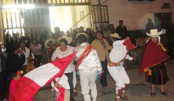 Después de la Sagrada Misa que se inició a las 07:00 p.m. vino el baile con acompañamiento de danzas típicas con caja y clarín.