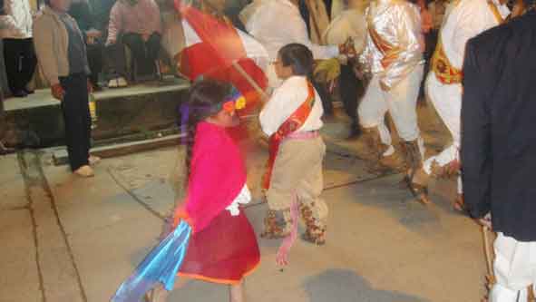 También se acompañó al festejo con quema de cohetes y la infaltable comida acompañada del “calientito”, pero lo que más llamó la atención fue la presencia de una pareja de niños danzarines que fue la atracción de los asistentes: