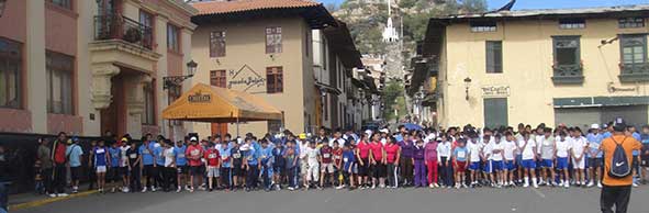 El día de ayer sábado 23 de junio se realizó un maratón entre estudiantes de diversas instituciones educativas cajamarquinas organizado por el IPD – Cajamarca, presentamos una fotografía en instantes de la partida desde el frontis de la Gobernación de Cajamarca en la plaza de Armas de Cajamarca.
