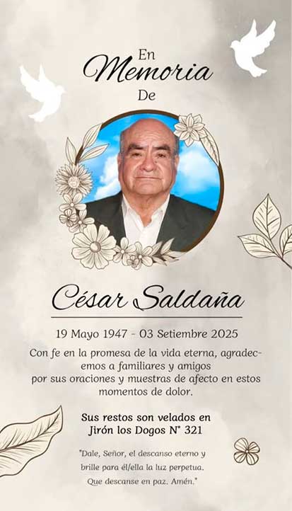 setiembre 2025, con misa de cuerpo presente en la Iglesia