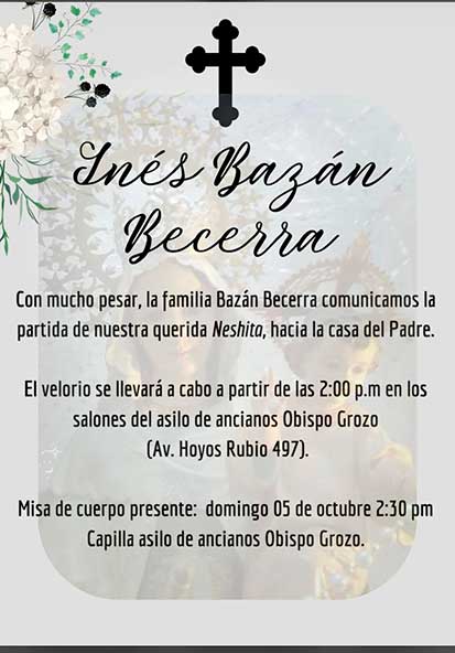 El sepelio, según refiere su sobrino, será el día lunes 22 de