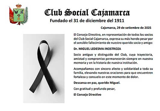 Comunicaciones de Cajamarca participan esta infausta noticia: