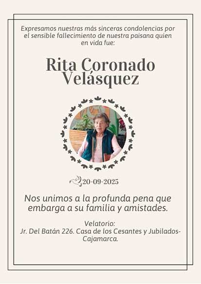 La Profesora Rita Coronado Velásquez fue natural del distrito de