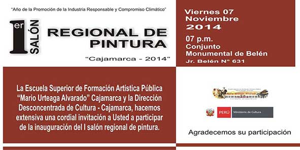 Al 1er. Salón Regional de Pintura "Cajamarca 2014" que organizan: La Escuela Superior de Formación Artística y la Dirección Desconcentrada de Cultura - Cajamarca desde el viernes 07 de noviembre de 2014.