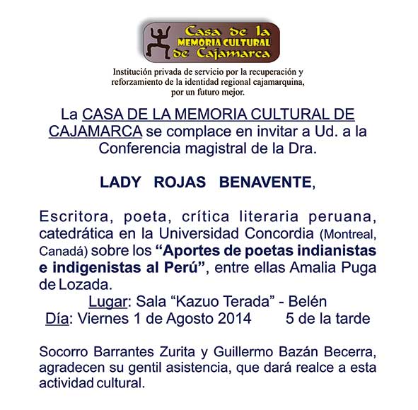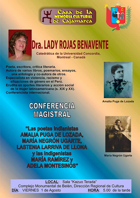La conferencia se realizará el día viernes 01 de agosto en la Sala Kazuo Terada de la Dirección desconcentrada de Cultura Cajamarca / Complejo Monumental de Belén, desde la 5 de la tarde.