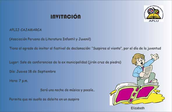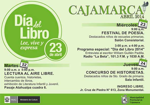 Invitación de La Dirección Desconcentrada de Cultura – Cajamarca, a la celebración del "Día del libro".