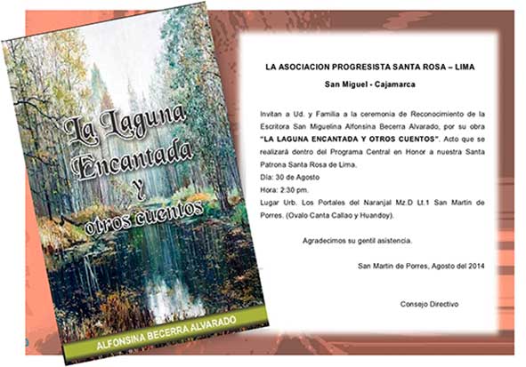 A LA PRESENTACIÓN DE LIBROS DE LOS ESCRITORES SANMIGUELINOS: ANTONIO GOICOCHEA CRUZADO “QUISIERA HACER DE TI…” Y ALFONSINA BECERRA ALVARADO “LA LAGUNA ENCANTADA Y OTROS CUENTOS”