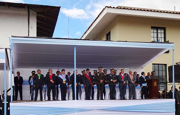 En el Estrado de Honor estuvieron presentes el flamante Alcalde de la Municipalidad Provincial de Cajamarca Ing. Manuel Becerra Vilchez, el Presidente del Gobierno Regional Porfirio Medina Vásquez, el Gobernador de Cajamarca Ever Hernández Cervera, la Directora de la DDC – Cajamarca, autoridades del Poder Judicial, Militares y Policiales.