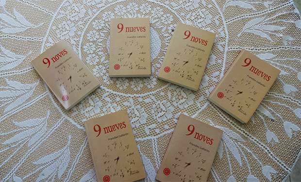 Quedé muy sorprendido al encontrar en una mesa de mi casa seis ejemplares del último libro de poemas 9 nueves del connotado escritor y poeta cajamarquino Fransiles Gallardo, con cámara en mano los alineé, les tomé una fotografía para recordar esta sorpresa y aquí les presento.
