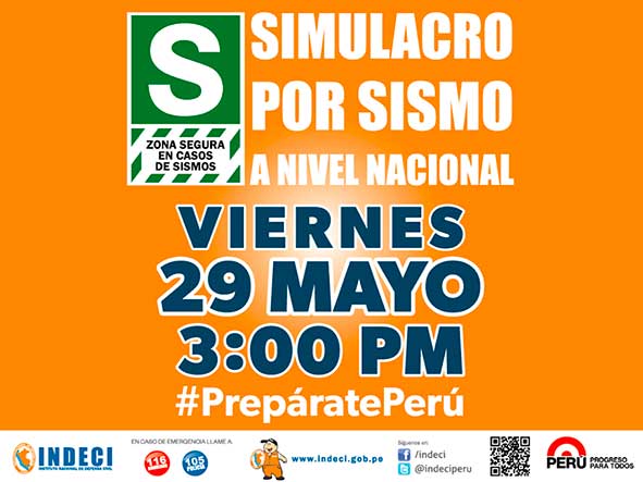 El día de hoy se realizará el Primer simulacro de sismo y tsunami a nivel nacional, los colegios y las instituciones públicas y privadas de todo el país participarán desde las 3 de la tarde, el simulacro se desarrollará sobre el escenario de un sismo de 8.5 grados de magnitud en la escala de Richter, con una duración de dos minutos, con epicentro localizado a una profundidad de 40 kilómetros y, además, generará una alarma de tsunami para las zonas del litoral.