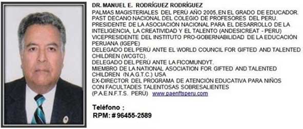 Presidente de la Asociación Nacional para el Desarrollo de la Inteligencia, la Creatividad y el Talento (ANDESICREAT-PERÚ)