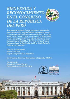 Lo trascendente de esta feria es que el día 24 la ceremonia inaugural se llevará a cabo en el Congreso de la República a cargo de la congresista de la Región Junín Dra. Sonia Rosario Echevarría Huamán, en cuyo acto se hará entrega de un reconocimiento a todos los participantes.