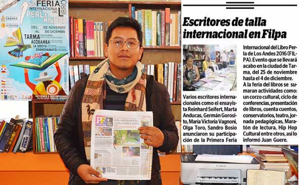 Hacemos pública nuestra sincera felicitación y nuestros deseos de éxito al Ing. Reinhard Seifert en esta nueva participación, asimismo, felicitamos a los organizadores y participantes de este gran suceso Literario: 1ra. Feria Internacional de libro “Perla de los Andes”.