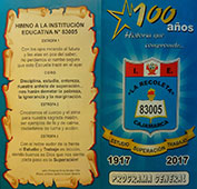 Estreno del Himno institucional de la Escuela N° 83005 Ex 120 La Recoleta, al conmemorar su centenario de creación. Letra: Nimia Morales Villar. Música: Guillermo Bazán Becerra |