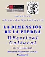 La dimensión de la piedra. II Festival Cultural. | 23, 24 y 25 de noviembre. | Biblioteca Ministerio de Cultura, Cajamarca. | DDC Cajamarca y Colectivo Absurdo Katábasis. |