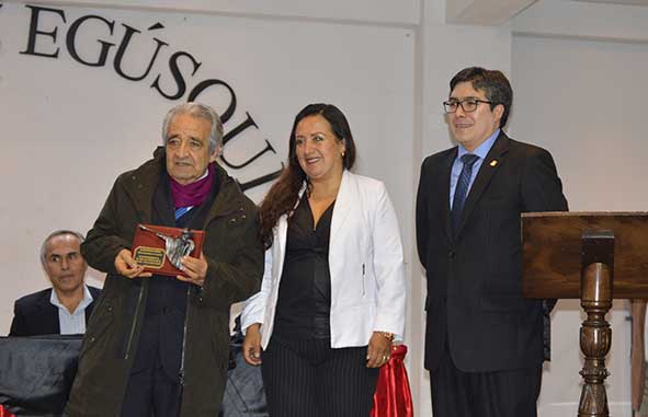 Al poeta y escritor Lic. Carlos Cabrera Miranda también le hicieron entrega de un recordatorio a cargo de la Sra. Lilian Cruzado y Diploma de honor el Dr. Andrés Villar por la reciente obtención del Primer premio en el festival literario internacional promovido por la Editorial Praxis de México con su poemario El viento y la piedra.
