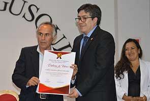 Posteriormente se hicieron entrega de recordatorios: al Dr. Jorge Díaz Herrera le hicieron entrega la Sra. Lilian Cruzado y el Dr. Andrés Villar.