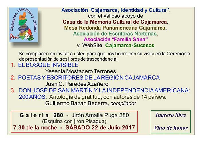 La cita es en la Galería 280 ubicada en el Jr. Amalia Puga N° 280, Cajamarca, desde las 07:30 pm los organizadores esperan su gentil asistencia.