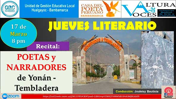Organizan: La Casa del Poeta Peruano de Bambamarca, UGEL Hualgayoc-Bambamarca y Voces de Altura.