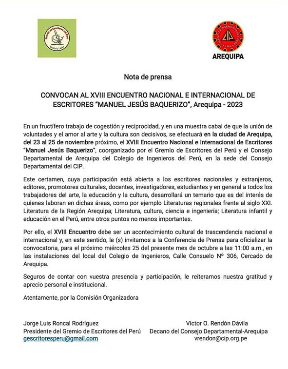 XVIII ENCUENTRO NACIONAL E INTERNACIONAL DE ESCRITORES