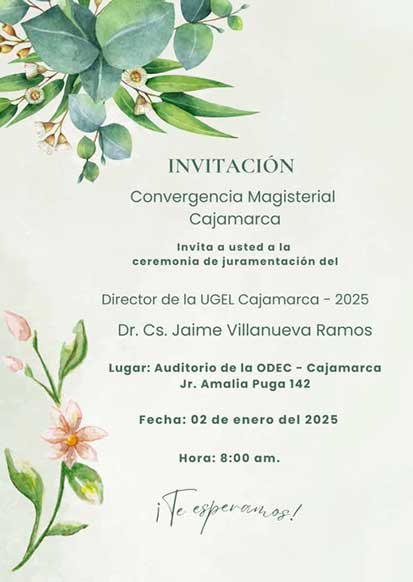 El Acto Inaugural estará presidido por el Director de la UGEL-Jaén Mg.