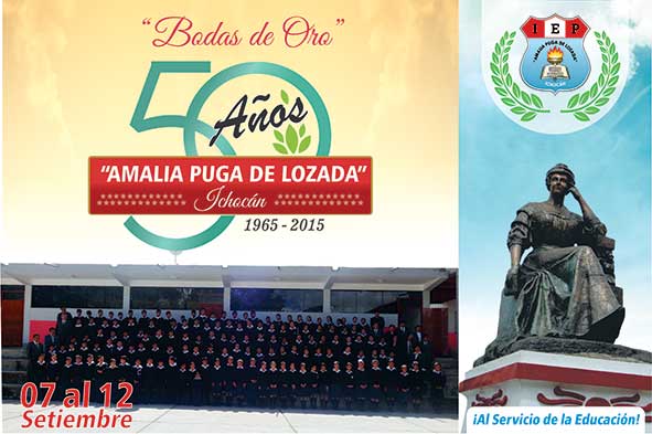Expreso mi sincera felicitación a todo el personal que labora en la I. E. “Amalia Puga de Losada” de Ichocán, al estudiantado, a la comunidad de ex – alumnos, a los Padres de Familia y a todos los paisanos del distrito de Ichocán por la celebración las “Bodas de Oro” 1965 – 2015 de la prestigiosa I. E. “Amalia Puga de Losada”, Alma Mater y fuente inagotable de cultura de los moradores del pueblo de Ichocán, deseando que todas sus actividades programadas sean exitosas y se perennicen como claro ejemplo para las generaciones venideras de los estudiantes.