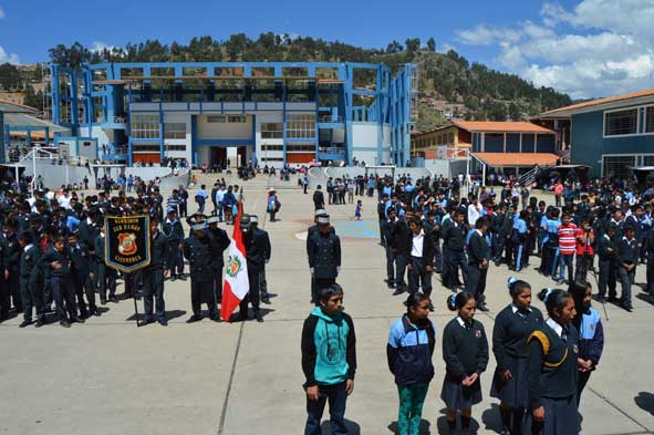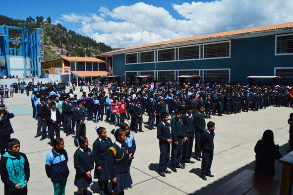 Se realizó en el Patio de Honor del local de Chontapaccha, se concentraron profesores, alumnos y padres de familia del Local La Recoleta y Calispuquio.