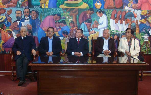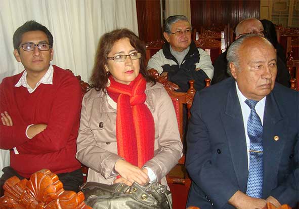 Periodista Manuel Silva Aranda, Par Decano Hugo Reyna Goicochea, Decano del Concejo Departamental de Cajamarca Iván León Castro, Par Decano Enrique Groso Rojas y Lic. Enf. Consuelo Lezcano Ruiz, Presienta de la Asociación Nacional de Periodistas de Cajamarca.