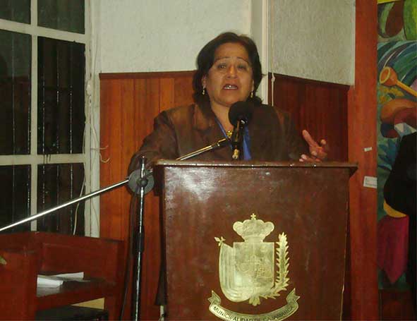 Saludo a los gremios periodísticos a cargo de la Lic. en Enfermería y periodista Consuelo Lezcano Ruiz, Presiente de la Asociación Nacional de Periodistas de Cajamarca.