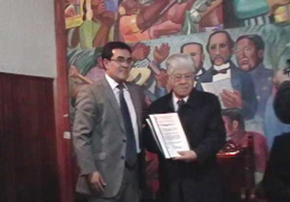 A continuación se llevó a cabo la distinción al Dr. Luzmán Salas Salas, excelente escritor, crítico literario y periodista cajamarquino con una Resolución expedida por el Concejo Departamental de Cajamarca y rubricada por su Decano Iván León Castro que fue entregada por el gran periodista cajamarquino Manuel Silva Aranda su hijo Roger Salas Paredes.