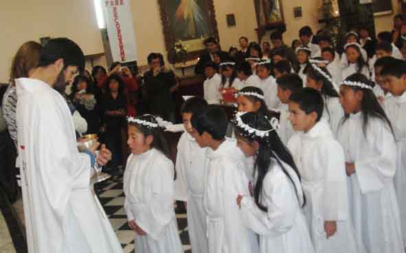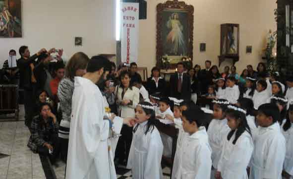 Niños y niñas se ubicaron en las primeras bancas con sus tocas blancas, su cirio, su cinta blanca y su misal, preparados para recibir por primera vez el Cuerpo de Cristo, a continuación les presentamos algunas fotografías de este gran suceso del mundo cristiano.