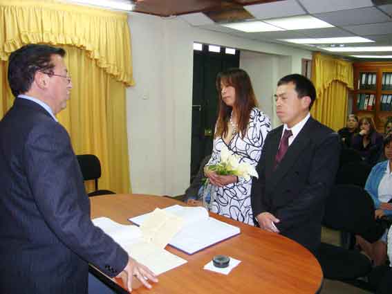 Ayer por la tarde 08/08/2008 contrajeron matrimonio civil Paty y Pepe en el salón de Registros Públicos del palacio Municipal de Cajamarca acompañados de sus familiares y amigos, la recepción se llevó a cabo en el domicilio del flamante esposo Jr. San Salvador Nº 110 de la ciudad de Cajamarca. Expresamos nuestras sinceras felicitaciones a los flamantes esposos, a sus familiares y amigos que se dieron cita a este jubilosos suceso.