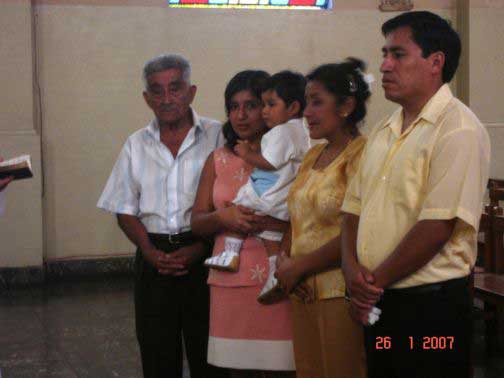 Felicitamos a los padres de Jesús Miguel por haber celebrado su bautismo en la ciudad de Trujillo el 26 de Enero de 2007, asimismo hacemos extensiva nuestra felicitación a los padrinos y a todos los familiares que se reunieron en este acto.