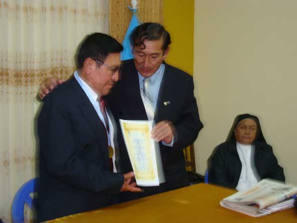 ![]() Entrega de Diploma de Honor al Prof. Guillermo Bazán Becerra Presidente de la Casa de la Cultura “María de Nazareth” de Cajamarca por promover la cultura. |