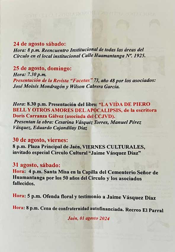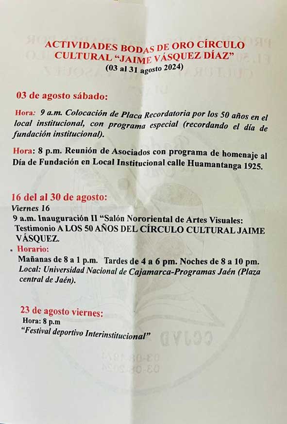 PROGRAMA CONMEMORATIVO, DEL 50° ANIVERSARIO DE FUNDACIÓN DEL CÍRCULO CULTURAL “JAIME VÁSQUEZ DÍAZ”