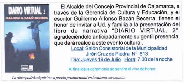 INVITACIÓN A LA PRESENTACIÓN DEL LIBRO “DIARIO VIRTUAL 2” DEL
